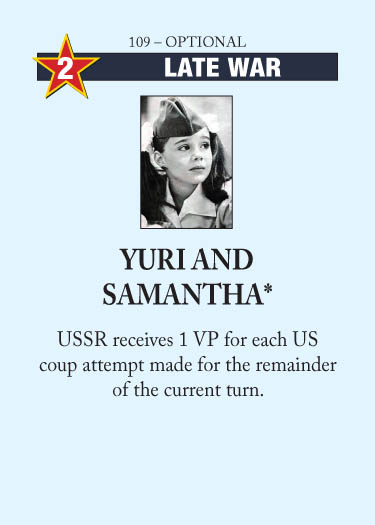 Of course, if you are not interested in the Mid War regions, then this card loses a lot of value, since that was where the US was going to coup anyway. But it is also very powerful if you combine it with improving DEFCON or use it to counter Nuclear Subs.